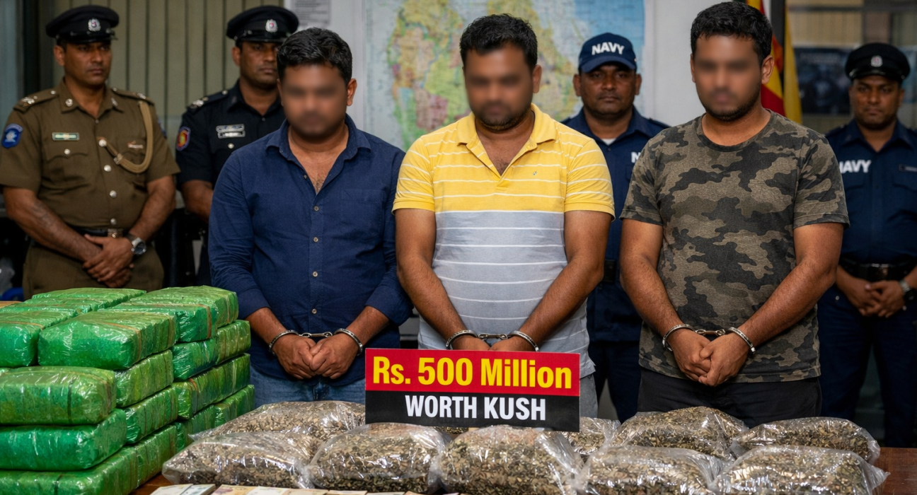 சுமார் ரூ. 500 மில்லியன் பெறுமதியான குஷ் (Kush) போதைப்பொருளை சட்டவிரோதமாக வைத்திருந்ததாகக் கூறப்படும் மூன்று இந்திய பிரஜைகள் கைது செய்யப்பட்டுள்ளதாக அதிகாரிகள் தெரிவித்துள்ளனர்.