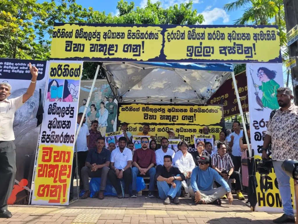 பத்தரமுல்லையில் அமைந்துள்ள ‘இசுருபாய’ கல்வி அமைச்சின் முன்பாக நேற்று (12) ஆரம்பிக்கப்பட்ட இந்தத் தொடர் சத்தியாக்கிரகப் போராட்டம் இன்று (13) இரண்டாவது நாளாகவும் முன்னெடுக்கப்பட்டு வருகின்றது.