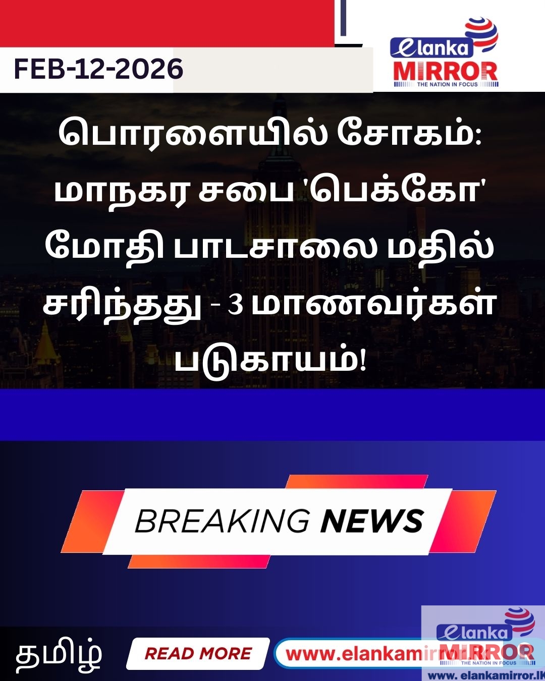 - தீயைக் கட்டுப்பாட்டுக்குள் கொண்டு வருவதற்காக கொழும்பு மாநகர சபையின் தீயணைப்புப் பிரிவைச் சேர்ந்த 3 தீயணைப்பு வாகனங்கள் சம்பவ இடத்திற்கு விரைந்துள்ளன.
