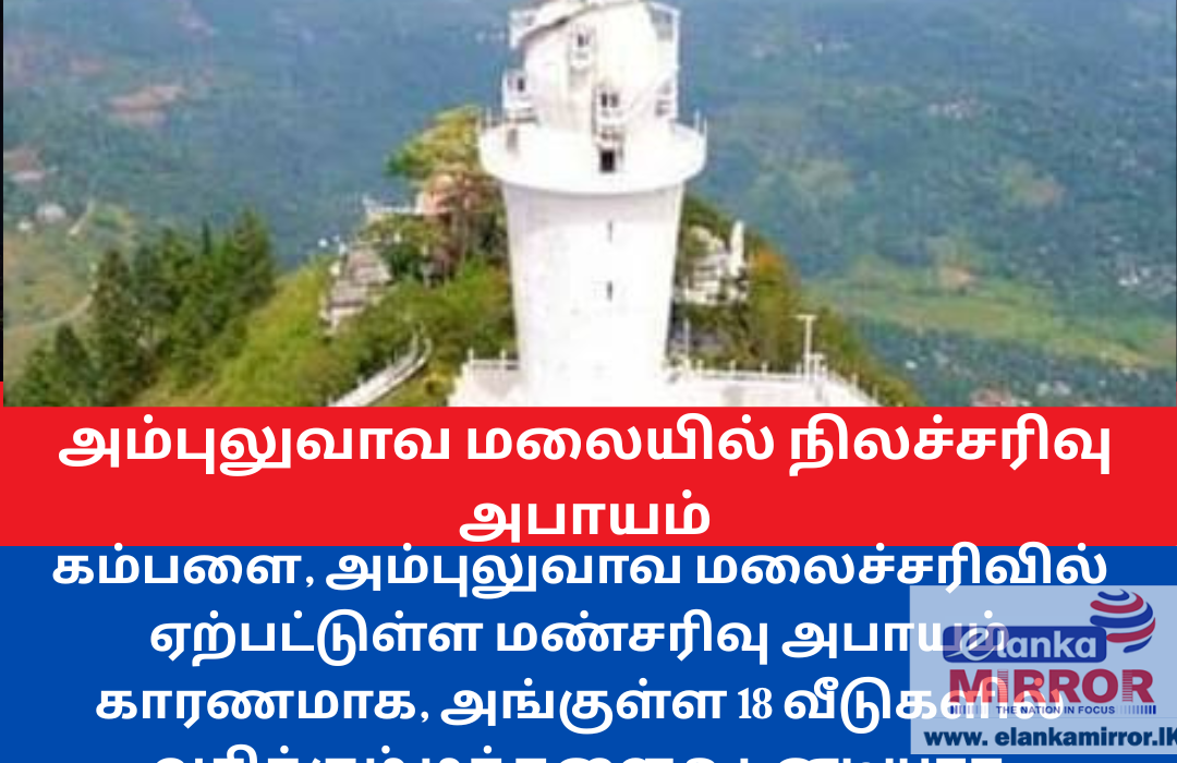 கம்பளை – அம்புலுவாவ மலையின் சரிவுப் பகுதிகளில் பாரிய நிலச்சரிவு ஏற்படும் அபாயம் நிலவுவதாக தேசிய கட்டிட ஆராய்ச்சி நிறுவனம் (NBRO) உத்தியோகபூர்வமாக எச்சரிக்கை விடுத்துள்ளது. இதன் காரணமாக, அதி அபாய வலயங்களில் அமைந்துள்ள 18 வீடுகளில் வசிக்கும் மக்களை உடனடியாக வெளியேறுமாறு அறிவுறுத்தப்பட்டுள்ளது.