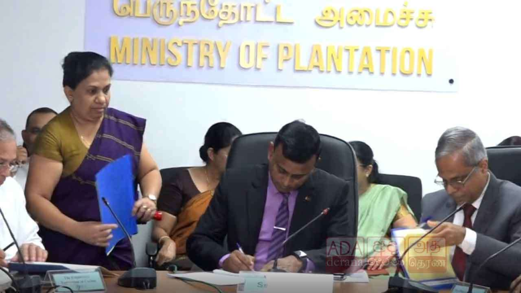 பெருந்தோட்ட மற்றும் சமூக உட்கட்டமைப்பு அமைச்சில் இன்று நடைபெற்ற விசேட நிகழ்வின் போது இந்த ஒப்பந்தம் கைச்சாத்திடப்பட்டது. அமைச்சின் செயலாளர் பிரபாத் சந்திரகிர்த்தி மற்றும் சம்பள நிர்ணய சபையின் அதிகாரிகள் முன்னிலையில் இந்த வரலாற்றுச் சிறப்புமிக்க நடவடிக்கை எடுக்கப்பட்டுள்ளது.