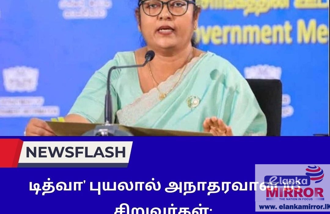 சமீபத்தில் இலங்கையைத் தாக்கிய ‘டித்வா’ (Ditwah) புயல் அனர்த்தத்தினால் தமது தாய், தந்தை அல்லது இருவரையும் இழந்த 103 சிறுவர்கள் அடையாளம் காணப்பட்டுள்ளதாக மகளிர் மற்றும் சிறுவர் விவகார அமைச்சர் சரோஜா சாவித்திரி போல்ராஜ் தெரிவித்துள்ளார்.